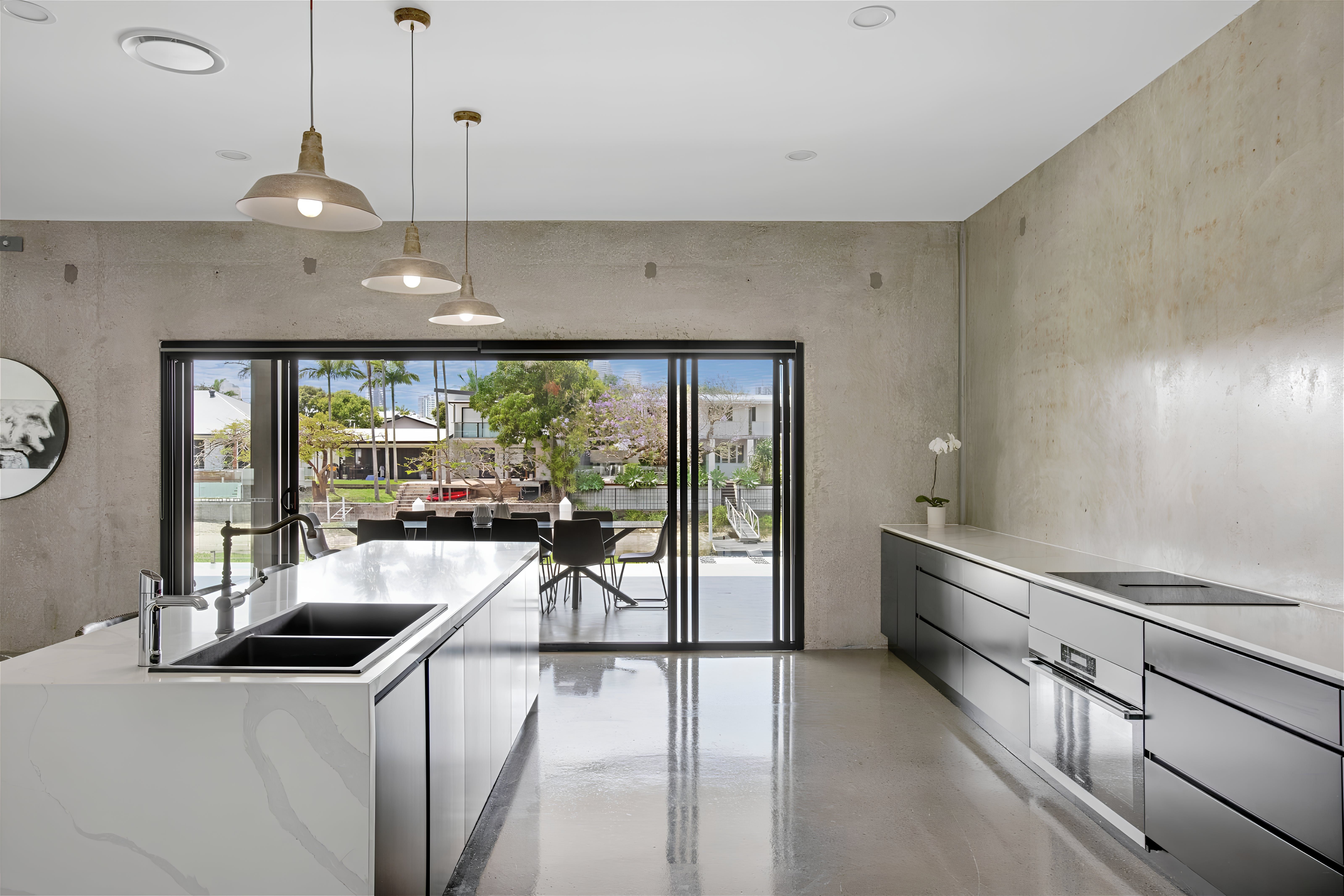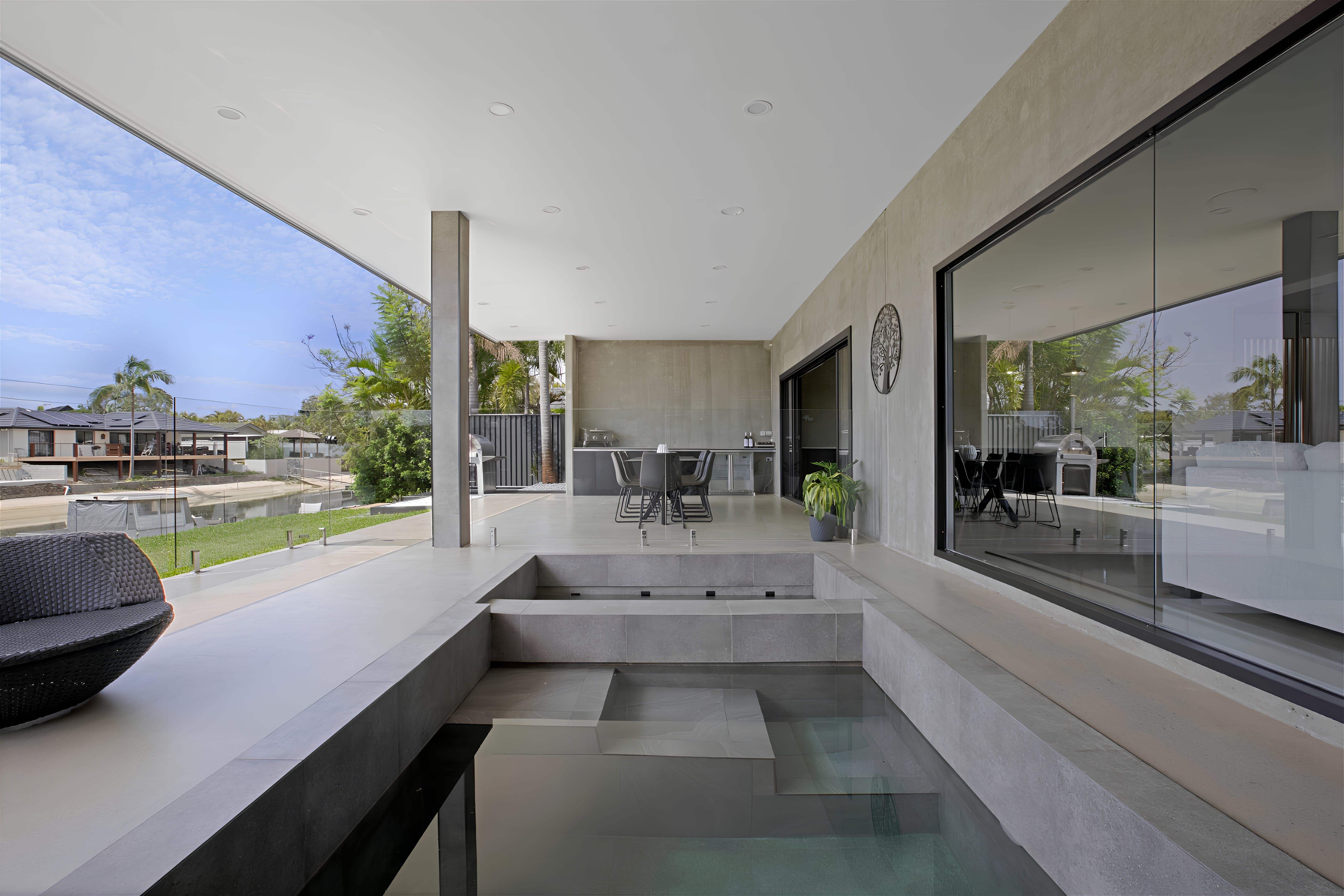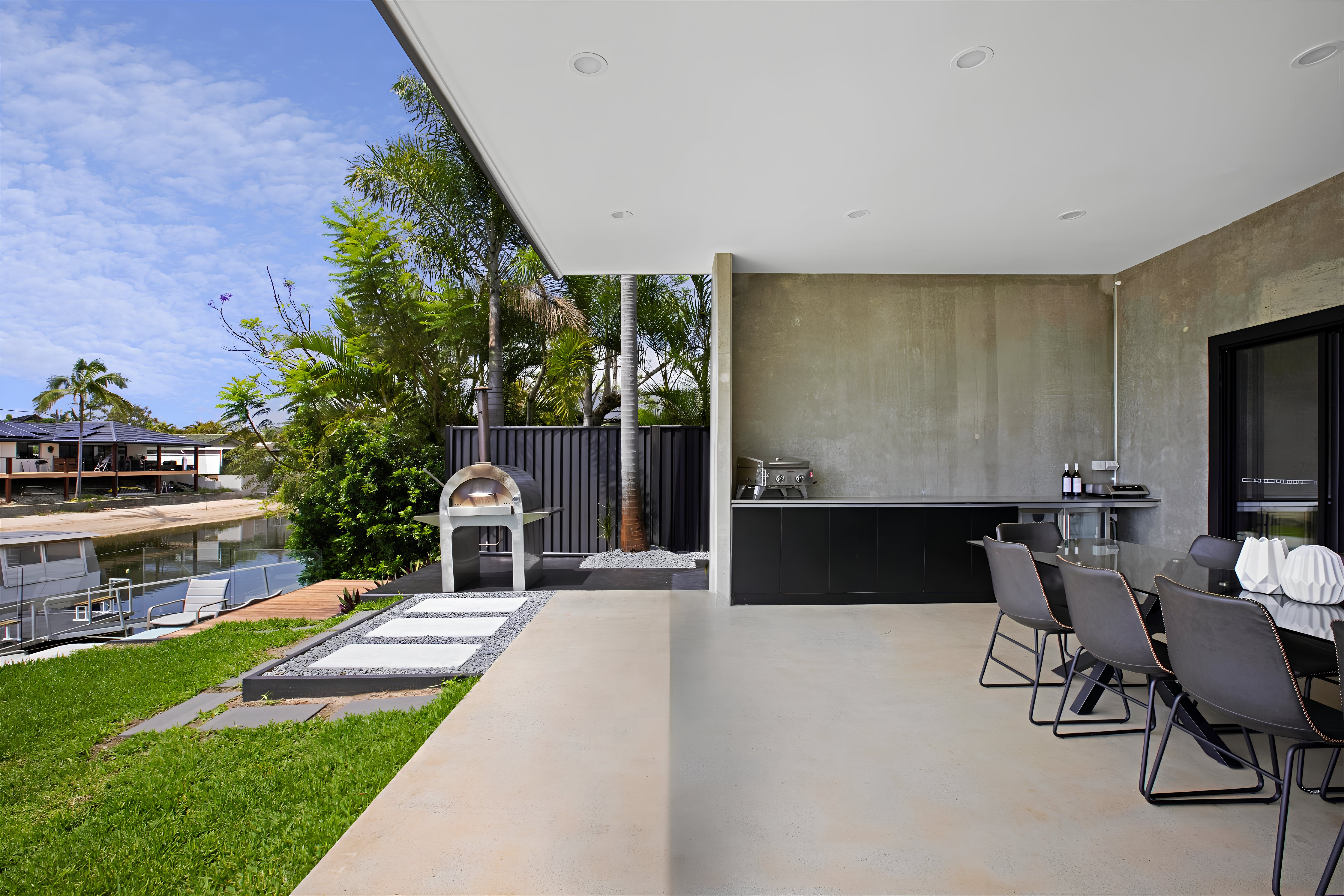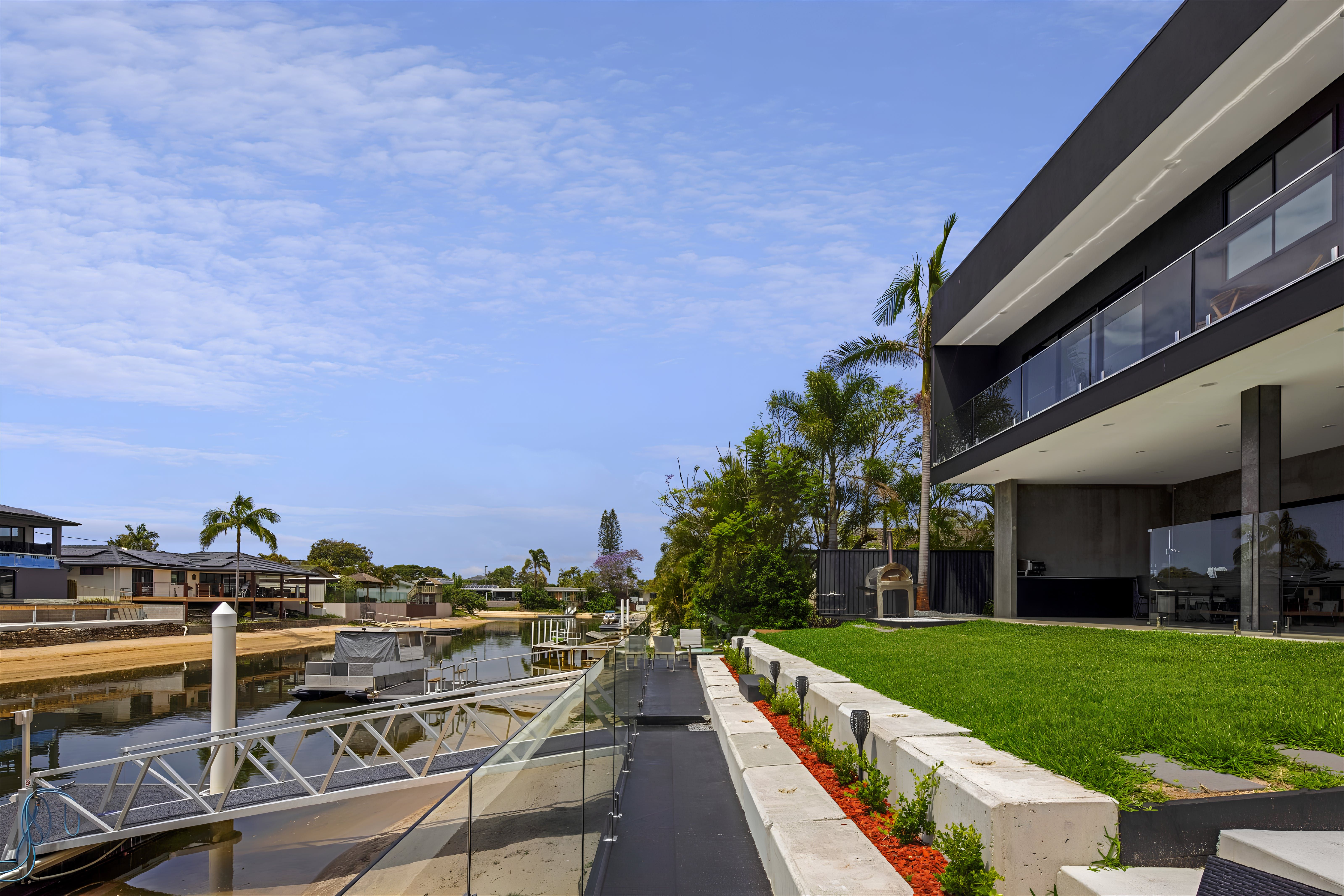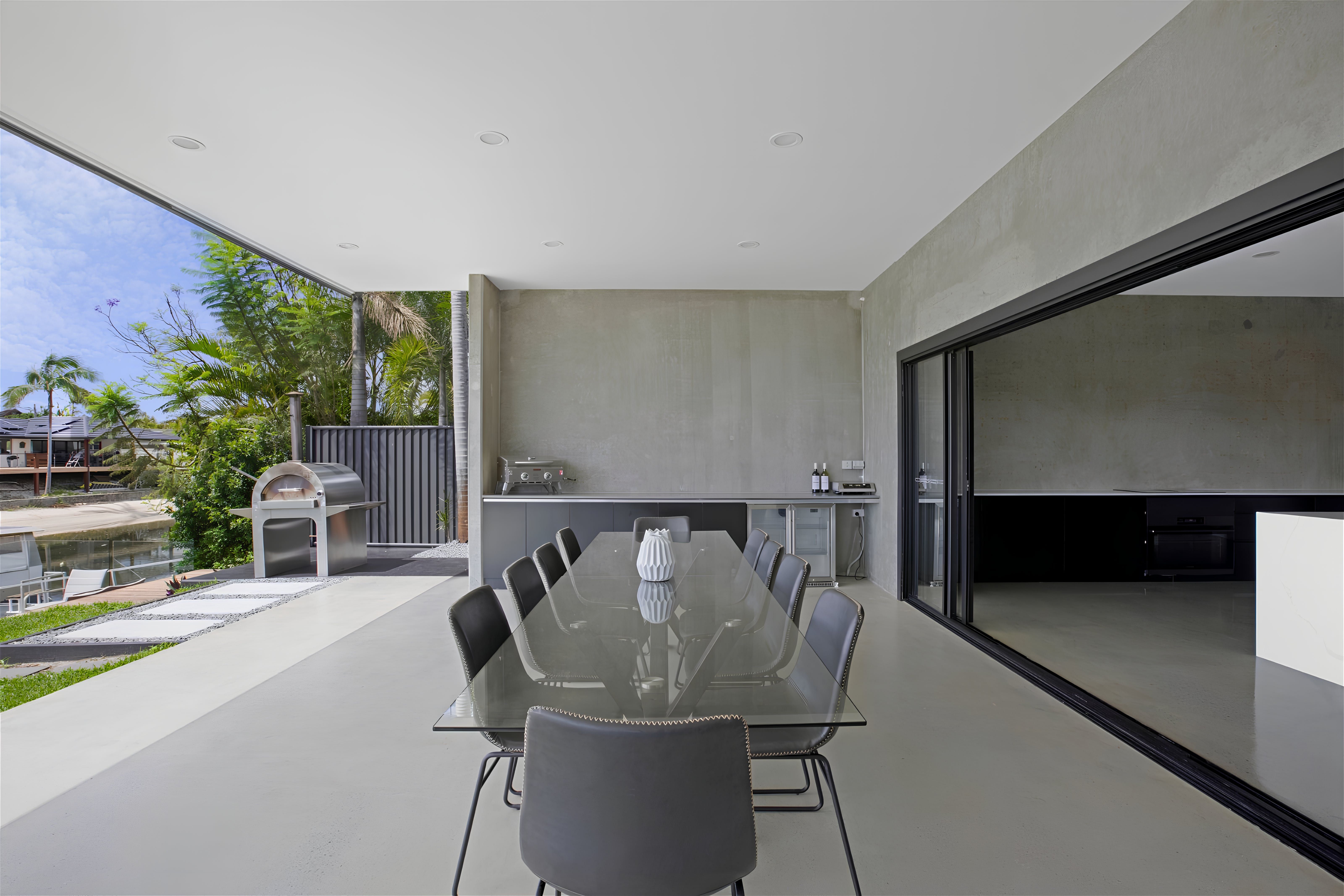 This exquisite new home embraces an industrial design and whispers of charm and tranquility. Situated in the highly sought-after neighbourhood of Broadbeach Waters, guests will enjoy a short stroll to the Casino, Convention Centre, Beach, and numerous dining options. The property boasts 6 bedrooms and 3 bathrooms, with an open plan living space on the ground floor and a captivating entertainment and pool room upstairs. Barn-style doors seamlessly connect distinct areas, while the riverfront views of Nerang River lend a serene touch. Wake up to gentle sunlight filtering through the windows and head downstairs for breakfast overlooking the water. The spacious and tastefully furnished living area opens onto an outdoor space, filling the interior with natural light. Alternatively, unwind in a more intimate setting on the upstairs landing or have friendly billiard games. Guests can conveniently park up to 4 cars within secured parking spaces. With all its modern amenities and chic decor, this property is ideal for family getaways, peaceful retreats with friends, or corporate team building exercises.