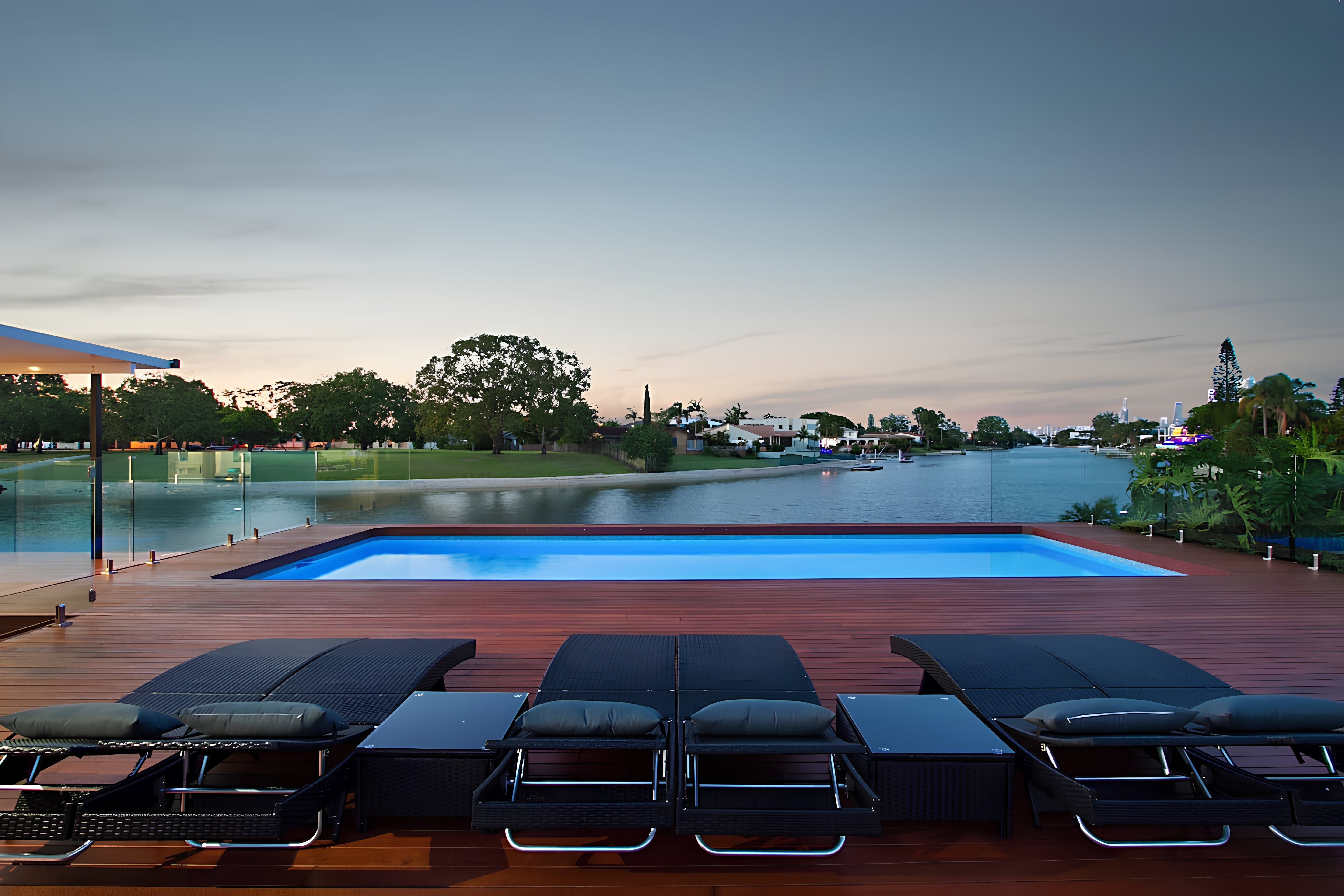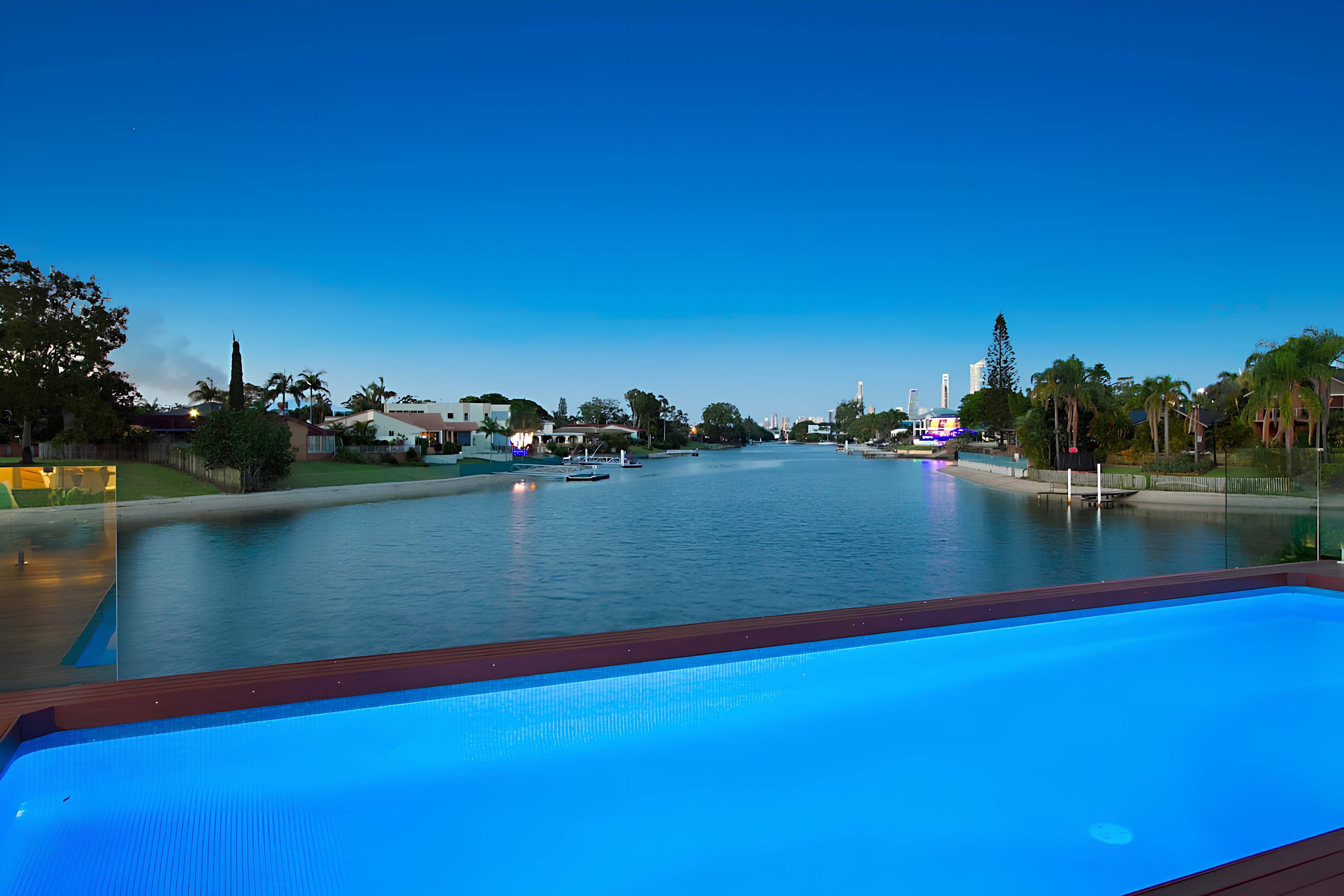 The contemporary architecture, stylish décor combined with amazing city and water views makes Whitehaven @ Broadbeach a truly unique and magnificent holiday home. Space is utilised wisely indoor living areas seamlessly merge with the outdoor environment featuring open plan layouts and breathtaking views of the water and surfers skyline. Whitehaven @ Broadbeach is a beautifully appointed luxurious waterfront home perfectly located in Broadbeach. Whitehaven boasts a state of the art chefs kitchen with Caesar Stone bench tops, European appliances, 5 generous bedrooms, 3 stylish bathrooms, air conditioning, large outdoor alfresco areas, a large fully heated swimming pool, 3 x living rooms and your very own private white sandy beach.