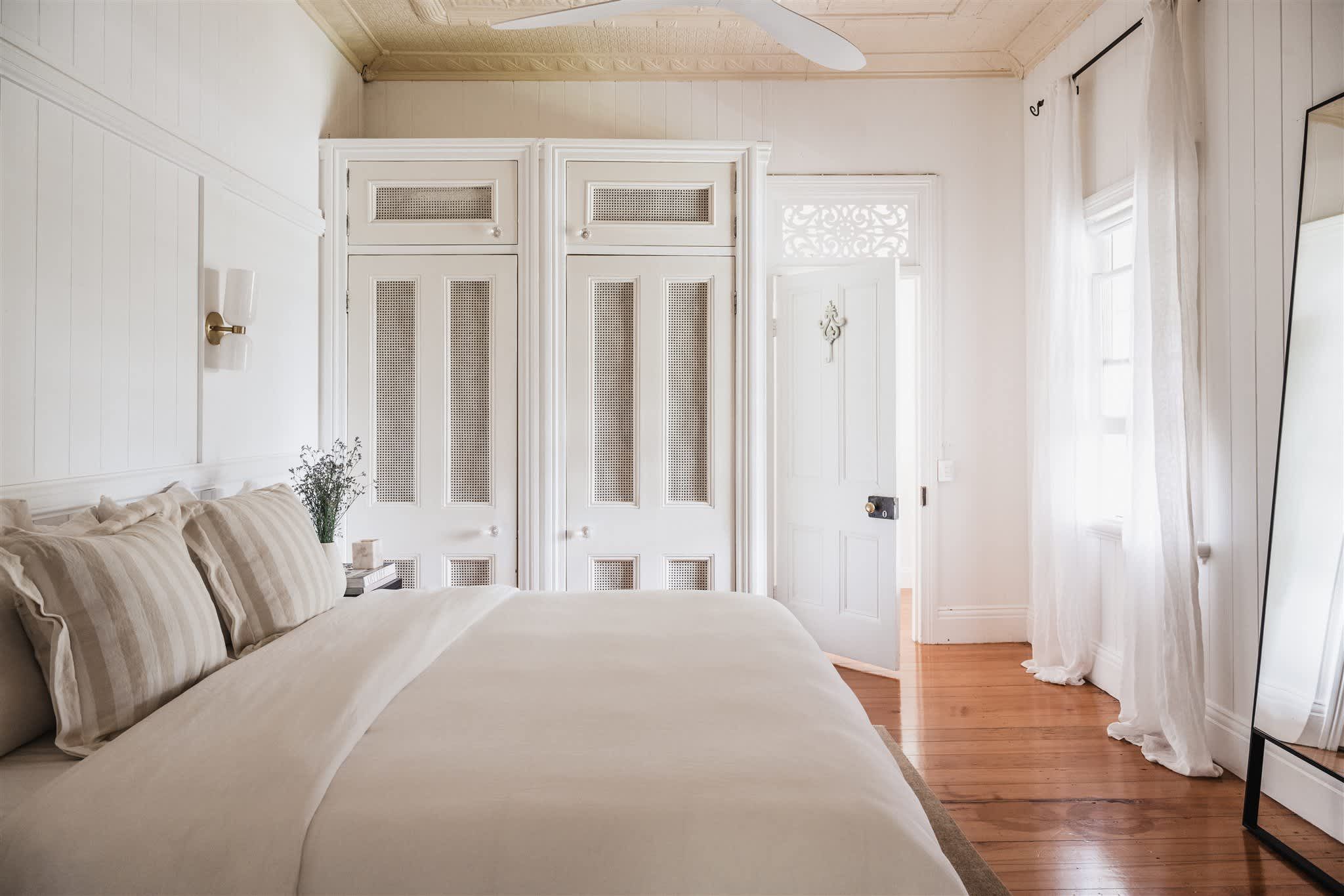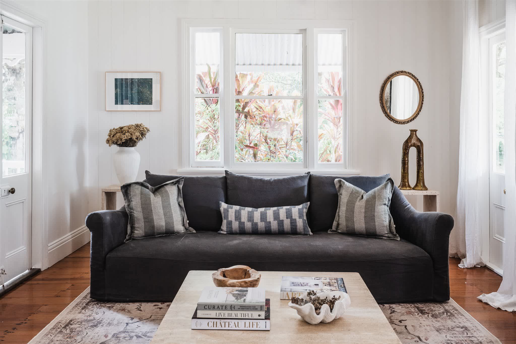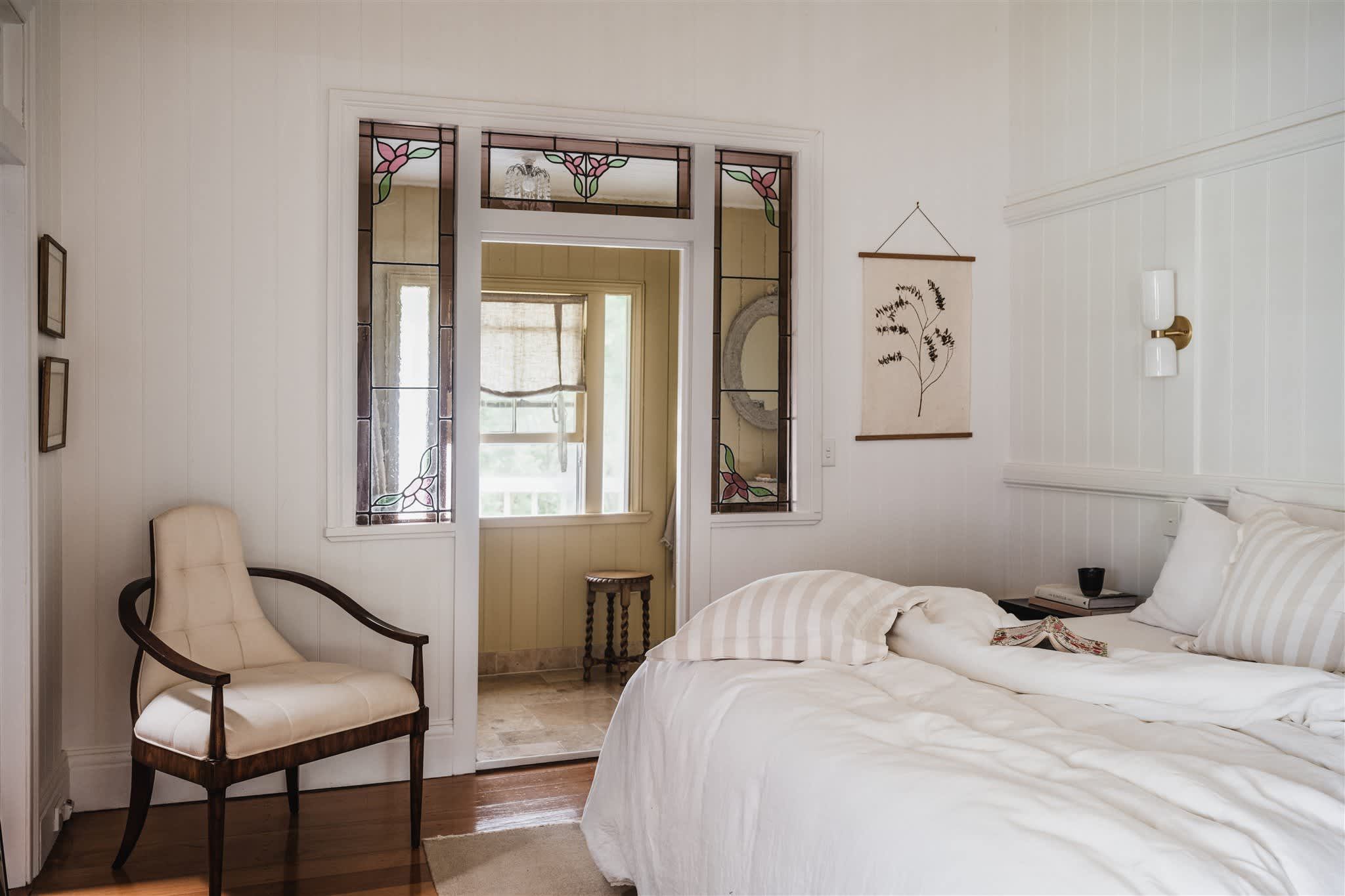 Blending heritage Queenslander charm and contemporary luxury, this beautiful home promises a peaceful stay. Close to the centre of Montville, a quaint tourist township, this home puts you within easy reach of the beaches of the Sunshine Coast. Staying in this history-rich home is all about slow living – there’s no TV here to distract you. Stroll through the 1.5 acres of pretty gardens, stopping for a dip in the magnesium pool, before dining on the verandah and admiring the picturesque outlook. The main house sleeps eight, with two guests sleeping in the romantic cottage on the grounds. Two guests will sleep on a double day-bed in the second lounge space.