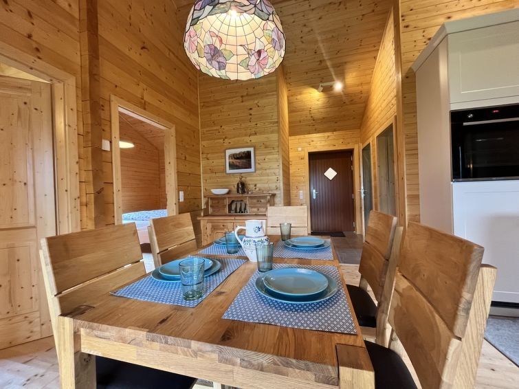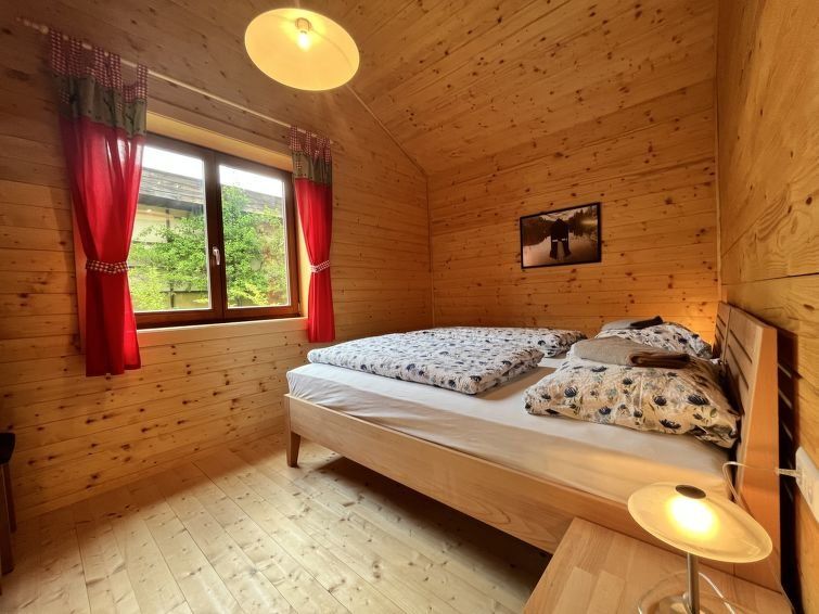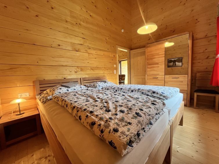 3-room chalet 60 m2. Object suitable for 4 adults. Wooden furniture furnishings: living/dining room with satellite TV and wood-burning stove. Exit to the loggia. 1 double bedroom with 1 double bed. 1 room with 2 beds. Open kitchen (oven, dishwasher, 4 ceramic glass hob hotplates, toaster, kettle, electric coffee machine).