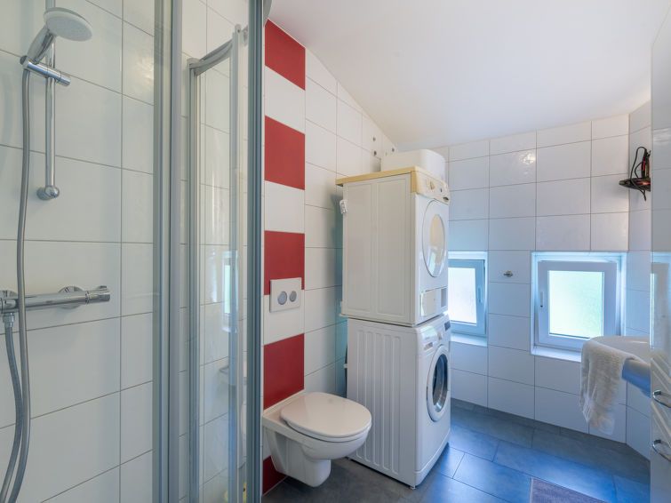 4-room apartment 100 m2 on 1st floor. Spacious, simple and practical furnishings: living room with Scandinavian wood stove and satellite TV. 1 double bedroom. 1 room with 1 double bed and 1 folding bed (90 cm, length 190 cm). 1 double bedroom. Exit to the balcony. Large kitchen (oven, dishwasher, 4 ceramic glass hob hotplates, toaster, kettle, microwave, freezer, electric coffee machine) with dining table.
