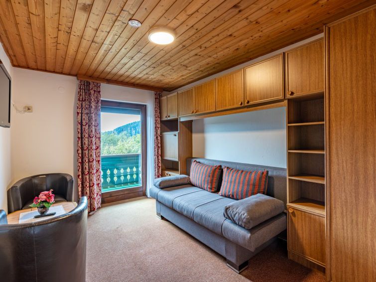 "Alpenrose Apartment 4", 2-room apartment 45 m2 on 2nd floor. Cosy furnishings: living/sleeping room with 1 double sofabed and satellite TV. 1 double bedroom. Small kitchen-/living room (2 hot plates, toaster, kettle, electric coffee machine) with dining table. Shower/WC. Heating.