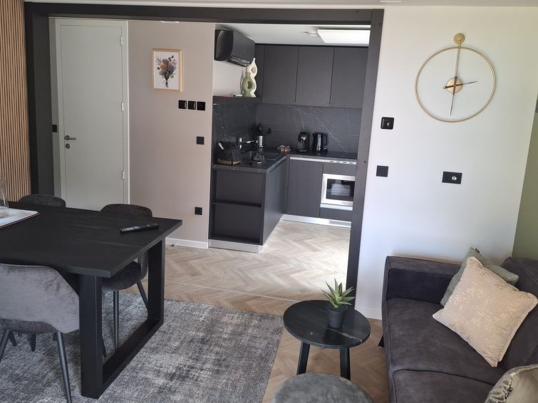 "Enzian 4", 3-room bungalow. Modern and tasteful furnishings: living room with dining nook and satellite TV (flat screen). 1 room with 1 double bed. 1 room with 2 beds. Open kitchen (dishwasher, 4 induction hot plates, kettle, electric coffee machine). Shower/WC, sep. WC. Heating.