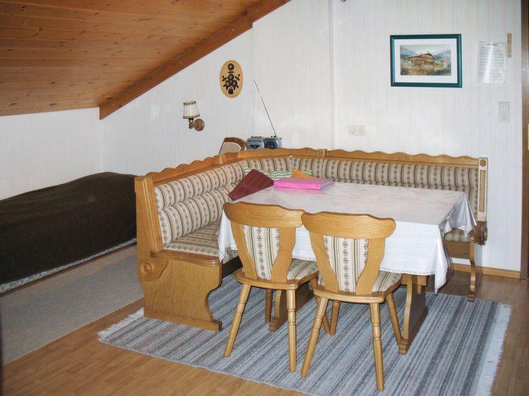 "Lassnig", 2-room apartment 60 m2 on 2nd floor. Simple and cosy furnishings: living/sleeping room with sloping ceilings with 2 sofabeds, dining table, satellite TV and radio. Exit to the balcony. 1 double bedroom with sloping ceilings. Exit to the balcony. Open kitchen (4 hot plates, oven, dishwasher, toaster, kettle, microwave, electric coffee machine).