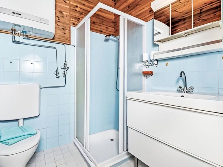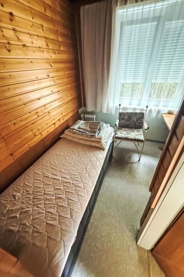 "Lilie", 3-room semi-detached house 45 m2. Object suitable for 3 adults. Very simple furnishings: living/dining room with panoramic window with 1 sofabed, dining table, satellite TV and international TV channels (flat screen). Exit to the terrace. 1 double bedroom. 1 small room with 1 bed.