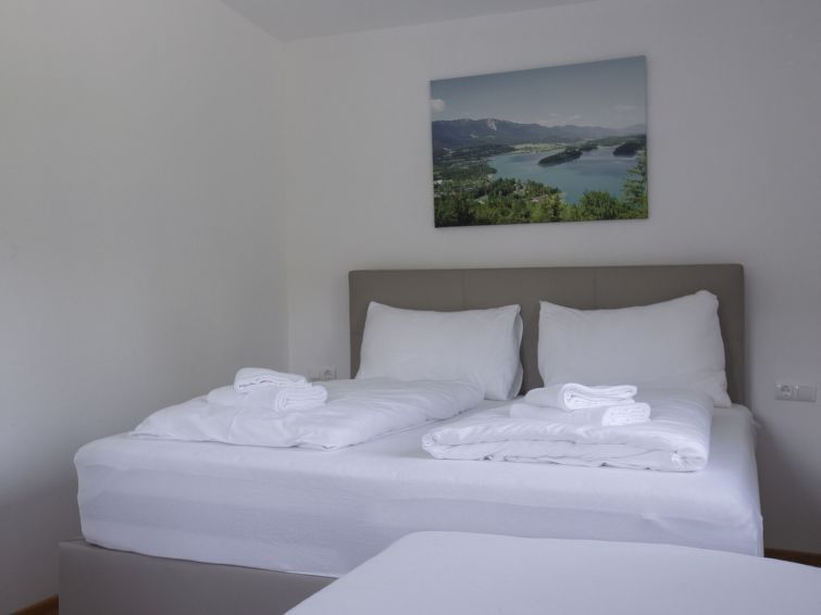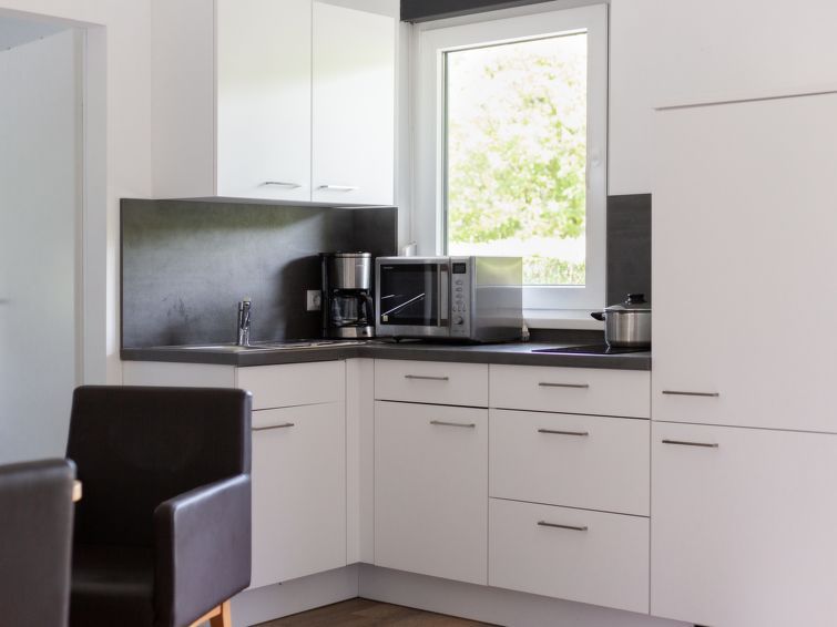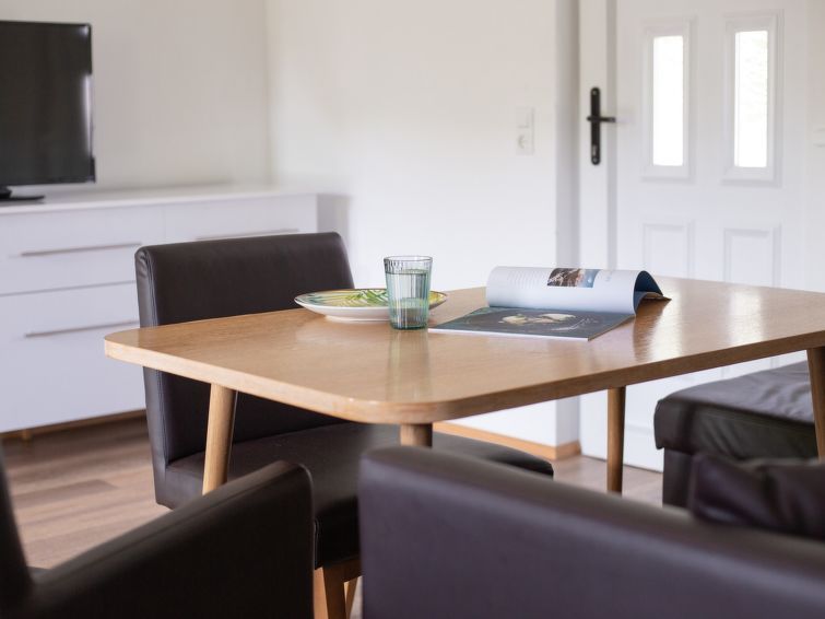 "Schiefling 5", 3-room bungalow. Modern and tasteful furnishings: living room with dining nook and satellite TV (flat screen). 1 room with 1 bed and 1 double bed. 1 room with 2 beds. Small, open kitchen (dishwasher, 4 ceramic glass hob hotplates, kettle, microwave, electric coffee machine).