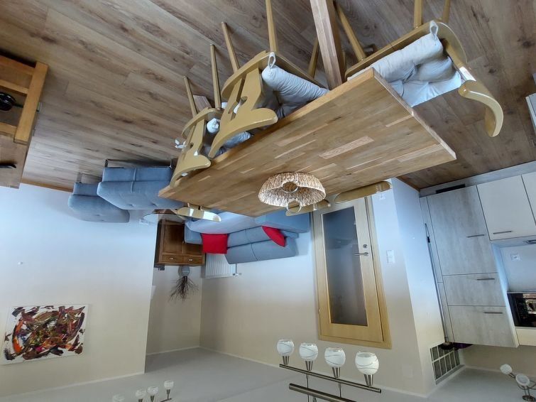 "Tulpe", 4-room apartment 95 m2 on 1st floor. Bright, cosy furnishings: living/dining room with dining table and satellite TV (flat screen). Exit to the balcony. 1 double bedroom with shower/WC and satellite TV (flat screen). Exit to the balcony. 1 room with 1 double bed (1 x 140 cm, length 200 cm), shower/WC and satellite TV (flat screen).