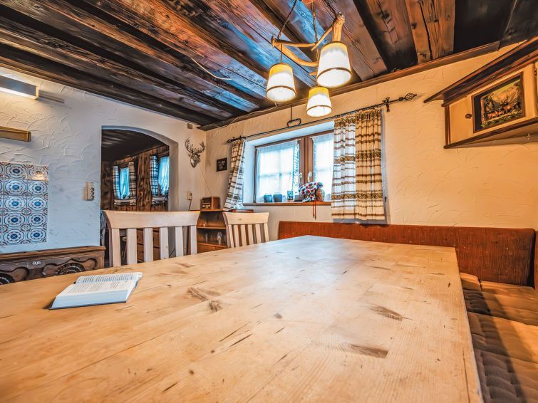 "Alte Sahnealm", 7-room house 150 m2 on 2 levels. Simple and rustic furnishings: living room with Scandinavian wood stove. Dining room with Scandinavian wood stove. 1 room with 2 beds, 1 double bed, Scandinavian wood stove and hand-basin. Kitchen (4 hot plates, oven, kettle, microwave, electric coffee machine) with Scandinavian wood stove.