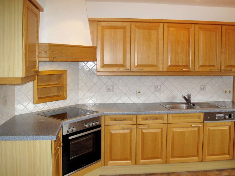 "Prieslern", 8-room house 165 m2 on 3 levels. Bright, cosy furnishings: 1 double bedroom with shower/WC. 1 double bedroom. Upper floor: living room with satellite TV. Exit to the balcony. 1 double bedroom. 1 room with 1 bed and 1 x 2 bunk beds. Kitchen (oven, dishwasher, 4 ceramic glass hob hotplates, toaster, kettle, electric coffee machine) with dining nook.