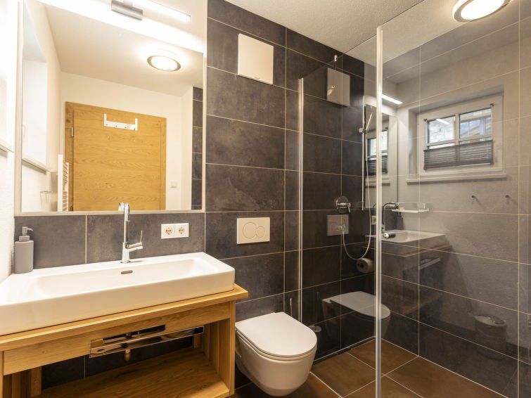 "Premium 1B mit Sauna", 5-room apartment 110 to 120 m2. Bright, comfortable and tasteful furnishings: 4 double bedrooms. Living/sleeping room with 1 double sofabed, dining table, satellite TV and flat screen. Open kitchen (oven, dishwasher, 4 ceramic glass hob hotplates, toaster, kettle, microwave, freezer, electric coffee machine).