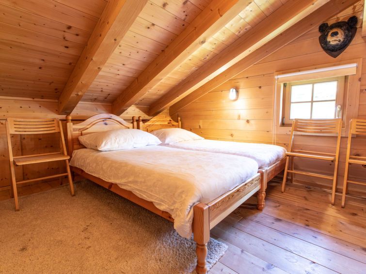 6-room house 126 m2 on 3 levels. Tasteful furnishings: 2 double bedrooms. 1 room with 1 x 1 bunk beds, 1 double bed. Large living room with cable TV (flat screen), radio and CD-player. Exit to the garden. Shower/WC. Upper floor: 1 double bedroom. Large living/dining room with Scandinavian wood stove, radio and CD-player.