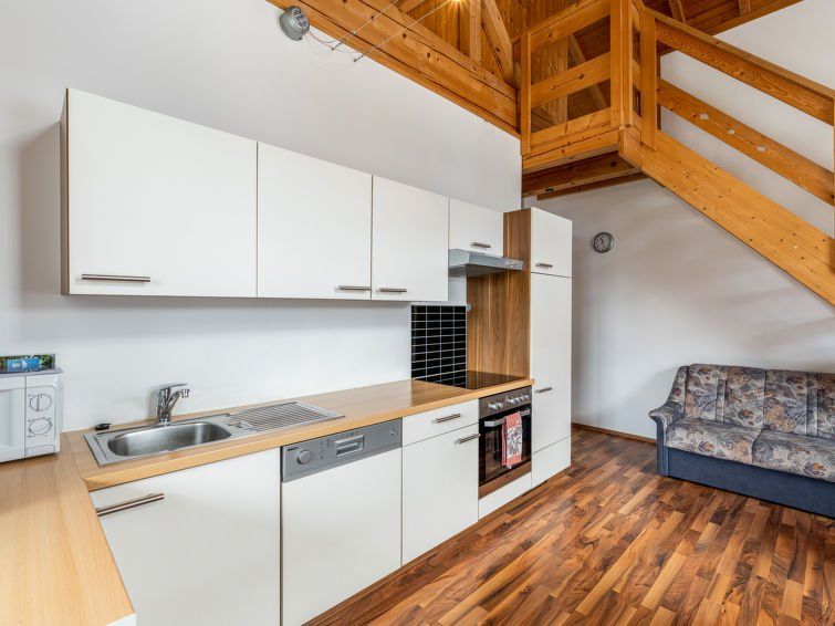 "Rot", 2-room maisonette 70 m2 on 1st floor. Spacious and bright: entrance hall. Living/dining room with dining table and satellite TV (flat screen). Open kitchen (oven, dishwasher, 4 ceramic glass hob hotplates, microwave). Shower/WC. Upper floor: 1 open large room with 1 double sofabed and 2 double beds.