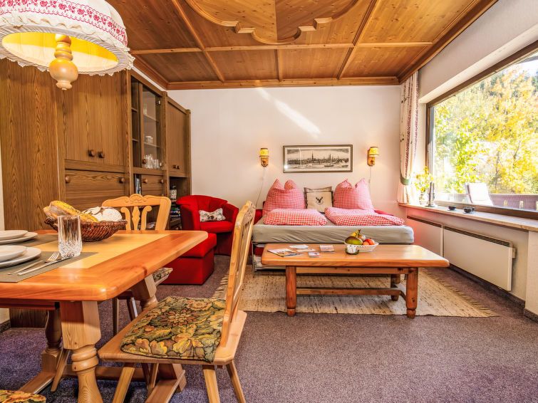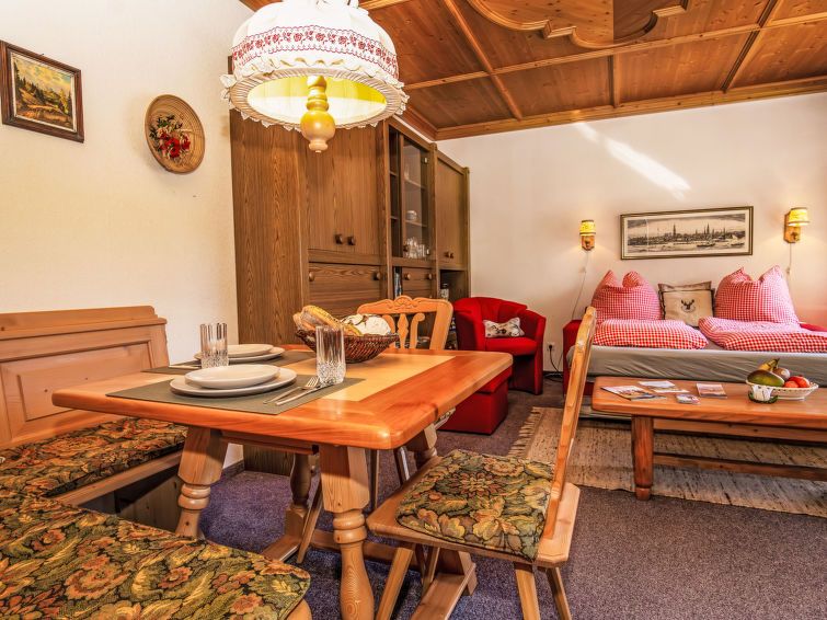 "Dachstein Top 12", 2-room apartment 42 m2 on 1st floor. Object suitable for 2 adults + 2 children. Beautiful and cosy furnishings: living/sleeping room with 1 double sofabed, dining nook and satellite TV (flat screen), radio. Exit to the loggia. 1 small children's room, without window with 1 x 2 bunk beds.