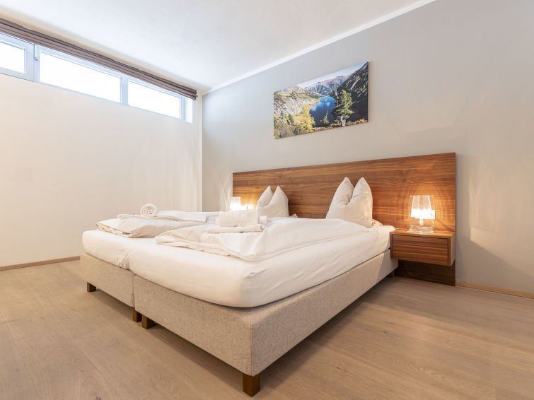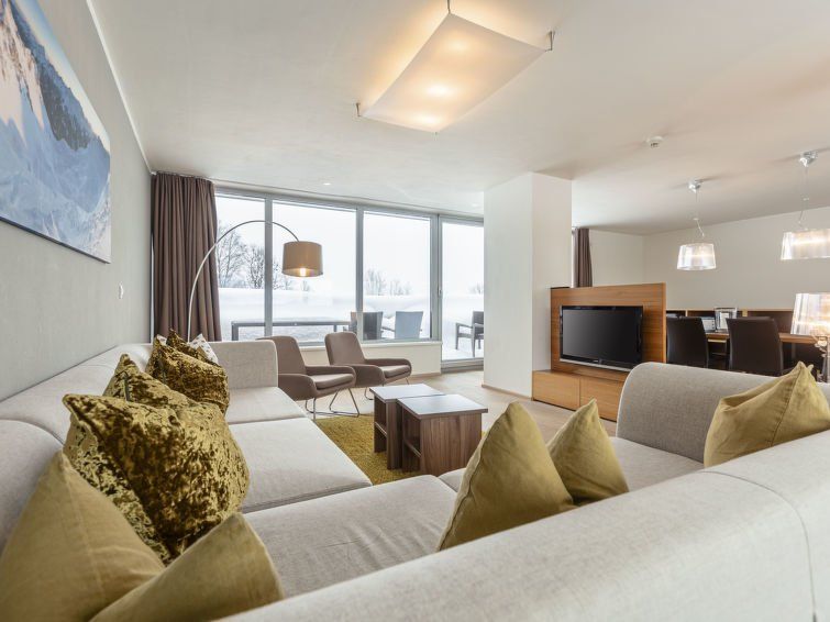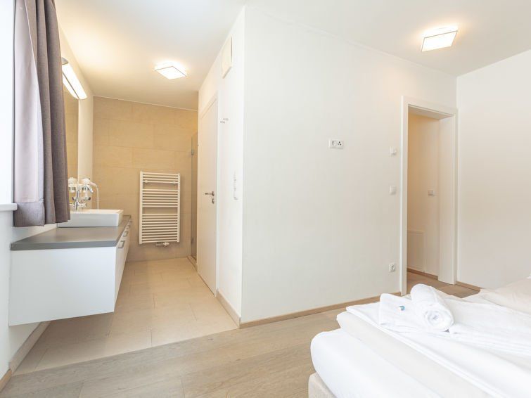 "Penthouse mit 3 Schlafzimmern & Pool", 4-room apartment 118 m2. Bright, comfortable and tasteful furnishings: open living/sleeping room with 1 double sofabed, dining table, satellite TV and flat screen. 1 double bedroom with shower/WC. 1 room with 2 beds. 1 double bedroom with shower.