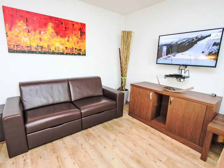 2-room apartment 62 m2 on 2 levels. Bright, tasteful and cosy furnishings: 2 double bedrooms, each room with satellite TV and flat screen. Living/sleeping room with 1 double sofabed, dining nook, satellite TV and flat screen. Luggage room. Open kitchen (oven, dishwasher, 4 ceramic glass hob hotplates, toaster, kettle, microwave, electric coffee machine, Capsules for coffee machine (Nespresso) extra).