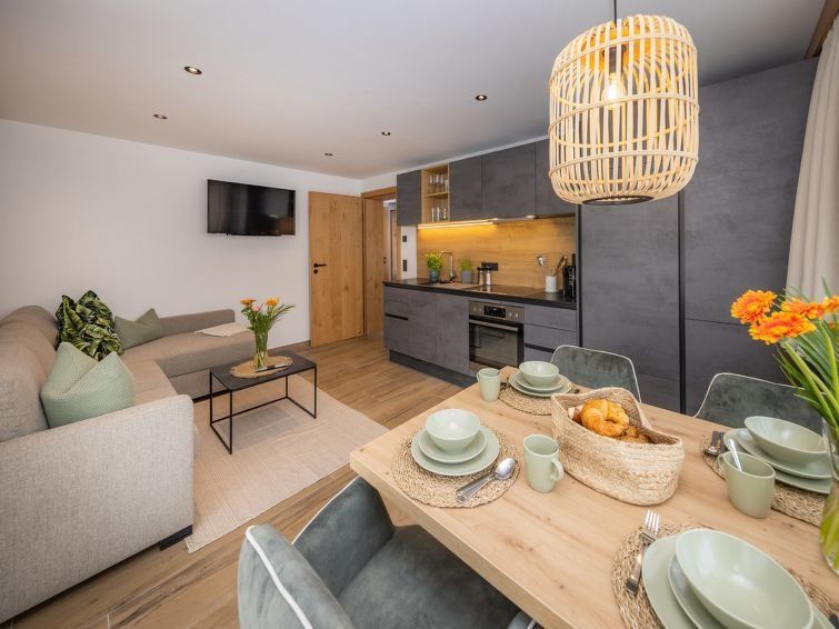 "Top 2", 2-room apartment 50 m2, on the ground floor. Bright, very modern and tasteful furnishings: entrance hall. 1 double bedroom with cable TV (flat screen). Kitchen-/living room (oven, dishwasher, 4 ceramic glass hob hotplates, toaster, kettle, electric coffee machine) with 1 double sofabed, dining table and cable TV (flat screen).