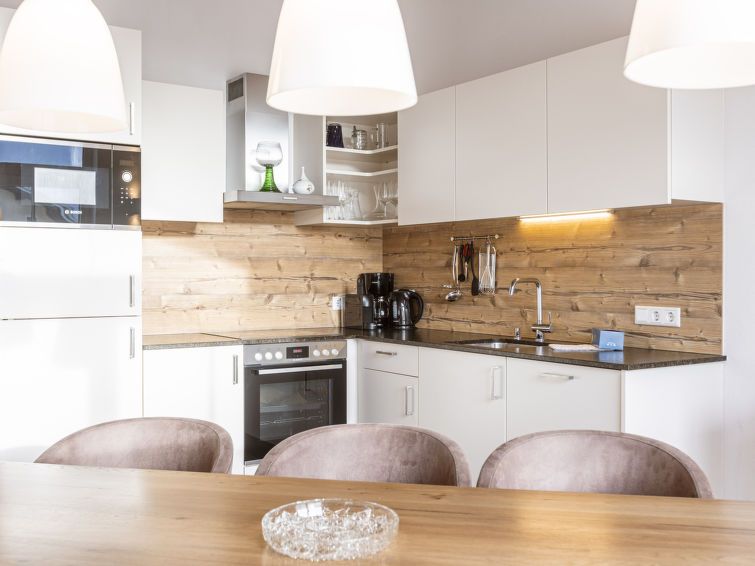 "Premium 324 für bis zu 8 Personen", 5-room apartment 104 m2. Bright, comfortable and tasteful furnishings: living room with dining nook and satellite TV (flat screen). 1 double bedroom with shower/WC and satellite TV (flat screen). 3 double bedrooms, each room with satellite TV (flat screen).