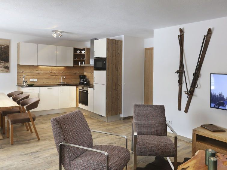 "Superior 302 für bis 6 Personen", 3-room apartment 73 m2, on the ground floor. Bright, comfortable and tasteful furnishings: living/sleeping room with 1 double sofabed, dining nook and satellite TV (flat screen). 2 double bedrooms, each room with satellite TV (flat screen). Open kitchen (oven, dishwasher, 4 ceramic glass hob hotplates, toaster, kettle, microwave, electric coffee machine).