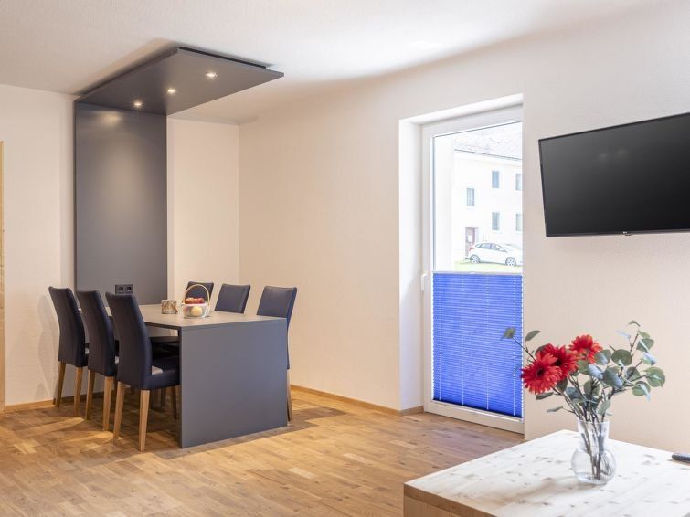 "für 5 P. Mit IR-Sauna & Sprudelwanne", 3-room apartment 59 m2. Bright, modern furnishings: living/dining room with dining nook and satellite TV (flat screen). 1 double bedroom. 1 room with 1 bed and 1 double bed. Open kitchen (oven, dishwasher, 4 ceramic glass hob hotplates, toaster, kettle, microwave, electric coffee machine).