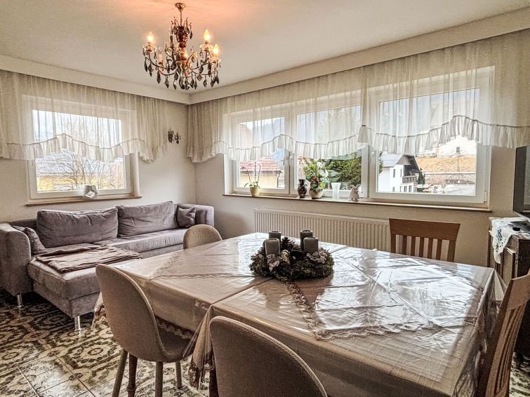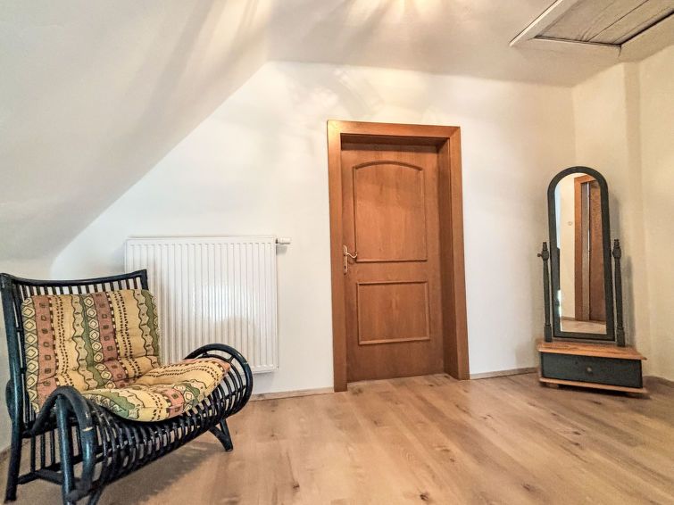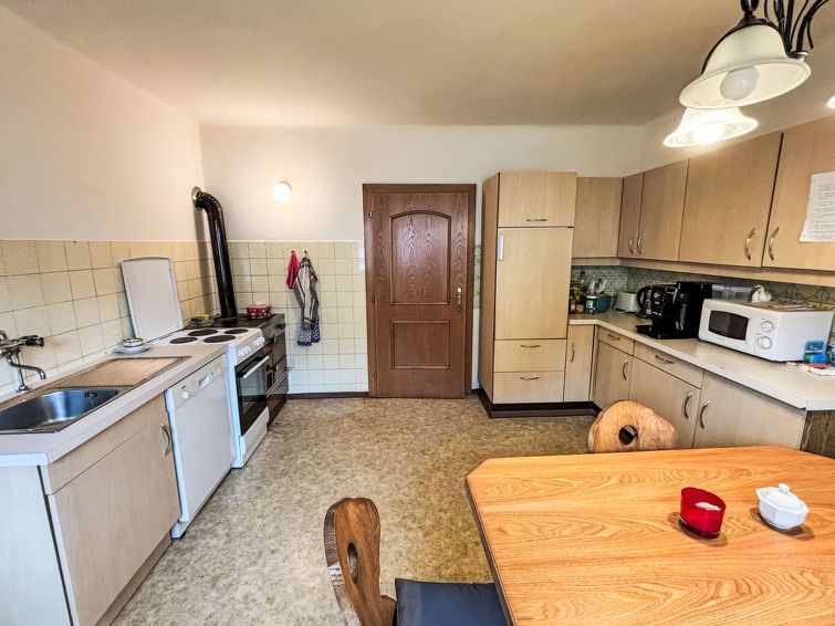 "Anna und Georg", 7-room house 120 m2 on 2 levels. Practical furnishings: living/dining room with dining table and satellite TV. 1 double bedroom with hand-basin. 1 double bedroom. Kitchen (4 hot plates, oven, dishwasher, toaster, microwave, electric coffee machine) with dining table.