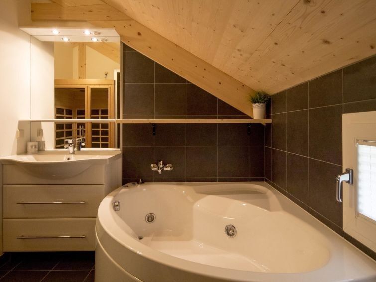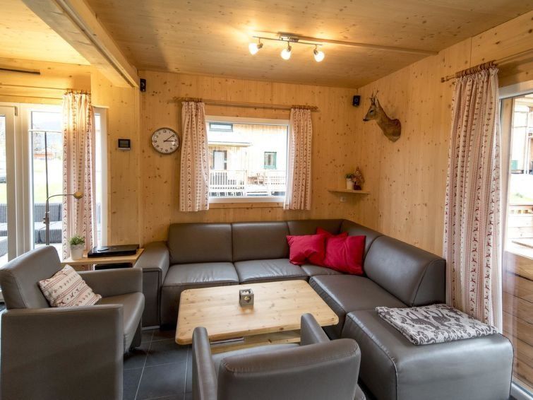"Superior mit 5 SZ,Sauna o.IR Sauna+SB", 5-room chalet 115 m2 on 2 levels. Bright, comfortable and wooden furniture furnishings: entrance hall. Living/dining room with dining nook and satellite TV (flat screen). 5 double bedrooms. Open kitchen (oven, dishwasher, 4 ceramic glass hob hotplates, microwave, electric coffee machine).