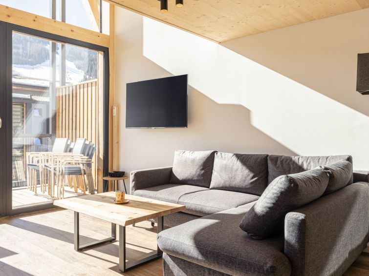 "Penthouse 1c mit Sauna&Außenbadewanne", 5-room apartment 112 to 117 m2. Spacious and bright, tasteful furnishings: living/dining room with dining nook and satellite TV (flat screen). 1 double bedroom with shower/WC. 2 double bedrooms. 1 room with 1 x 2 bunk beds, 1 double bed.