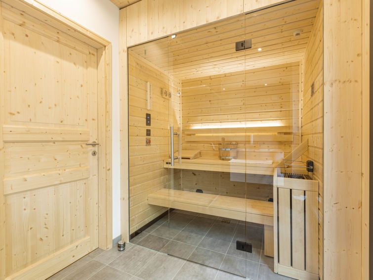 "Penthouse 2b mit Sauna&Außenbadewanne", 5-room penthouse 112 to 117 m2. Spacious and bright, tasteful furnishings: living/dining room with dining nook and satellite TV (flat screen). 1 room with 1 x 2 bunk beds, 1 double bed. 3 double bedrooms. Open kitchen (oven, dishwasher, 4 ceramic glass hob hotplates, toaster, kettle, microwave, electric coffee machine).