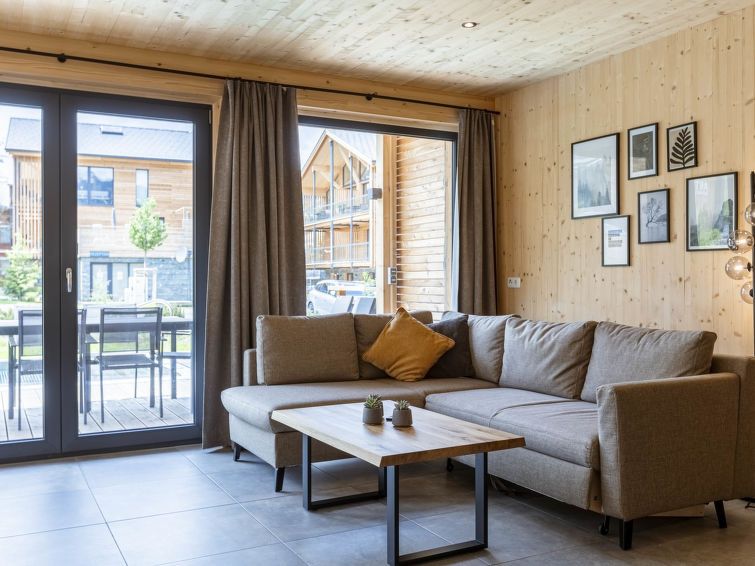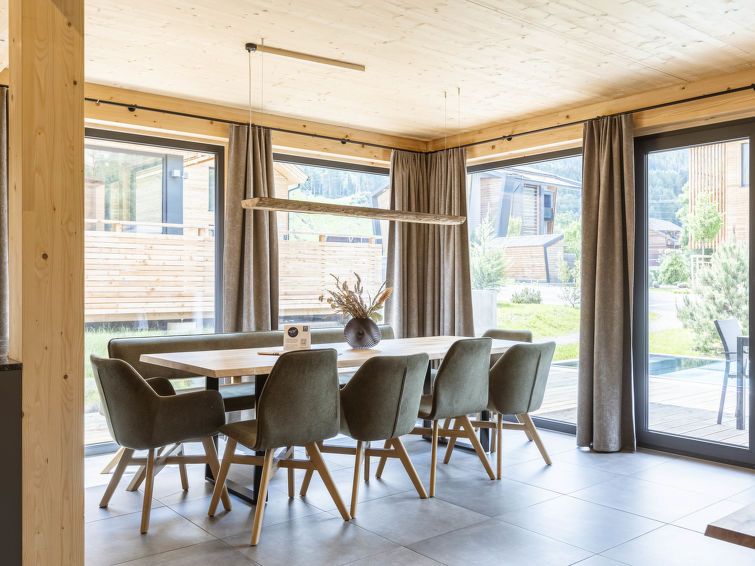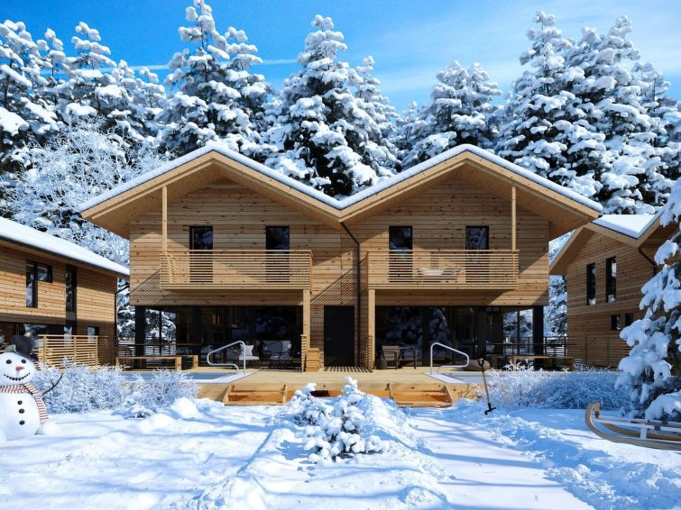 Modern, luxurious villa with sauna and pool within walking distance of the main ski lift. The photos are completely true to reality. The kitchen is well equipped, the main living room is big enough for 10 adults. Parking right in front of the house, lots of outdoor furniture and an outdoor grill. Although it was -5C outside in the early evening, the water in the pool was beautifully warm.