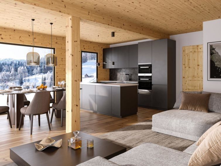 "Villa 5a mit Sauna & Pool", 5-room semi-detached house 114 m2. Spacious and bright, tasteful furnishings: living/sleeping room with dining nook and satellite TV (flat screen). 3 double bedrooms, each room with shower/WC. 1 room with 1 x 2 bunk beds, 1 double bed. Open kitchen (oven, dishwasher, 4 ceramic glass hob hotplates, microwave, grill, electric coffee machine).