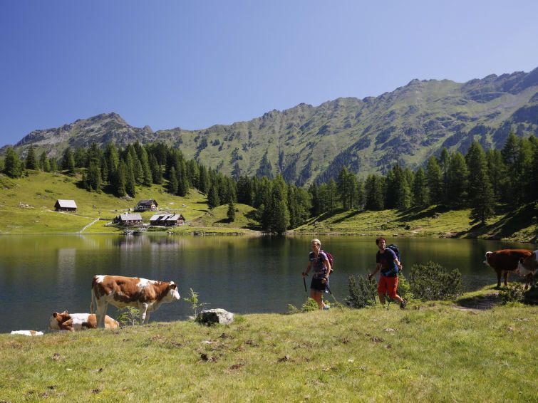 "mit 2 Schlafzimmern & Privater Sauna", 3-room apartment 100 m2. Bright, modern and tasteful furnishings: living/sleeping room with 1 double sofabed, dining nook and satellite TV (flat screen). 2 double bedrooms. Open kitchen (oven, dishwasher, 4 ceramic glass hob hotplates, kettle, microwave, electric coffee machine).