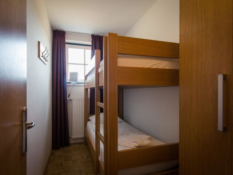 "Family 10 mit Balkon", 4-room apartment 60 m2. Modern and cosy furnishings: living/dining room with dining nook, satellite TV and flat screen. 1 double bedroom. 1 room with 1 x 2 bunk beds. 1 room with 2 beds. Small kitchen (dishwasher, 4 ceramic glass hob hotplates, microwave, electric coffee machine).