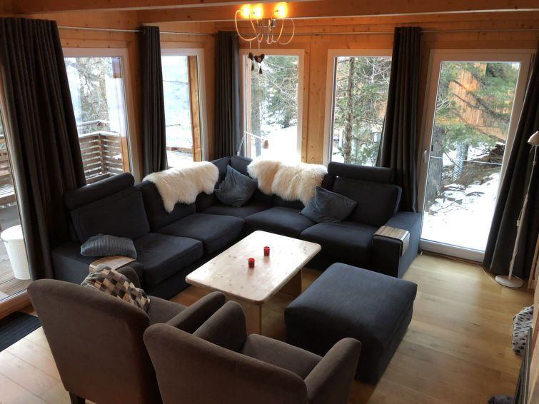 " 12 mit IR-Sauna&Sprudelbad Innen", 5-room chalet 120 m2. Luxurious and tasteful furnishings: open living/dining room with dining nook, satellite TV and flat screen. Open kitchen (oven, dishwasher, 4 ceramic glass hob hotplates, microwave, freezer, electric coffee machine). 2 showers/WC.