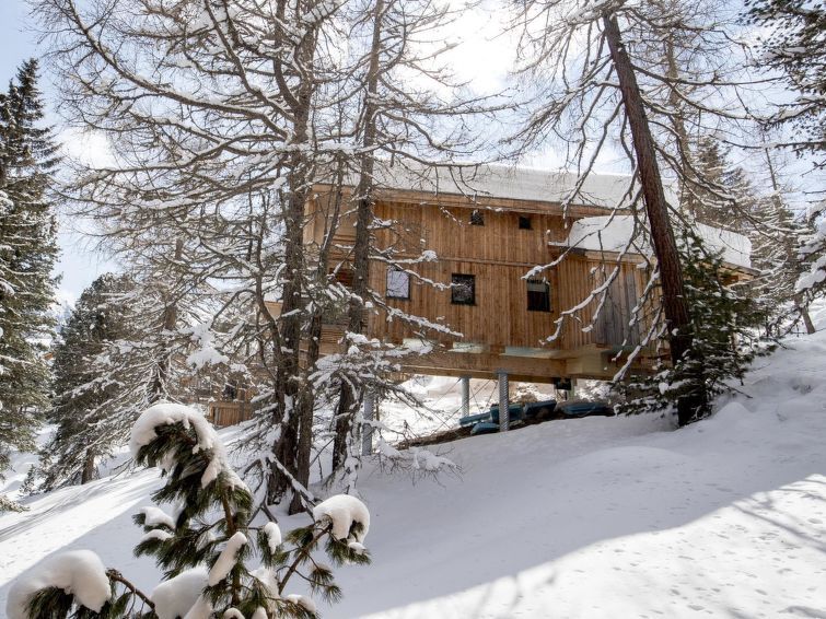 " 14 mit Sauna und Sprudelbad Innen", 5-room chalet 120 m2 on 2 levels. Luxurious and tasteful furnishings: living/dining room with dining nook and satellite TV (flat screen). Open kitchen (oven, dishwasher, 4 ceramic glass hob hotplates, toaster, kettle, microwave, electric coffee machine).