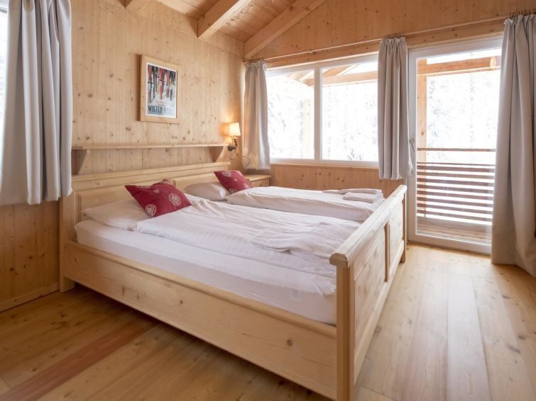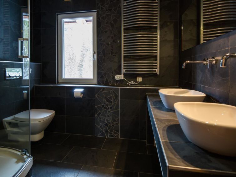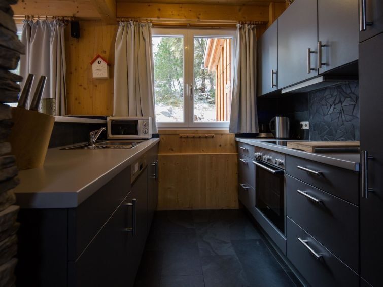 " 7 mit IR-Sauna&Aussensprudelbad", 5-room chalet 110 m2. Luxurious and tasteful furnishings: open living/dining room with dining nook, satellite TV and flat screen. Open kitchen (oven, dishwasher, 4 ceramic glass hob hotplates, microwave, freezer, electric coffee machine). Shower/WC.