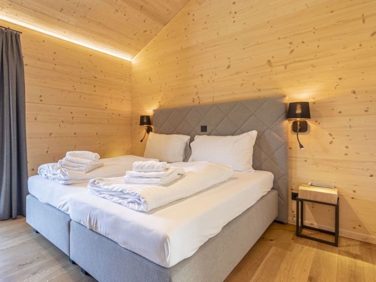 "Superior 24 mit Sauna & Hot Tub", 5-room chalet 135 m2 on 2 levels. Bright, modern and tasteful furnishings: living/dining room with dining nook and satellite TV (flat screen). 4 double bedrooms, each room with shower/WC. Open kitchen (oven, dishwasher, 4 ceramic glass hob hotplates, toaster, kettle, microwave, electric coffee machine).