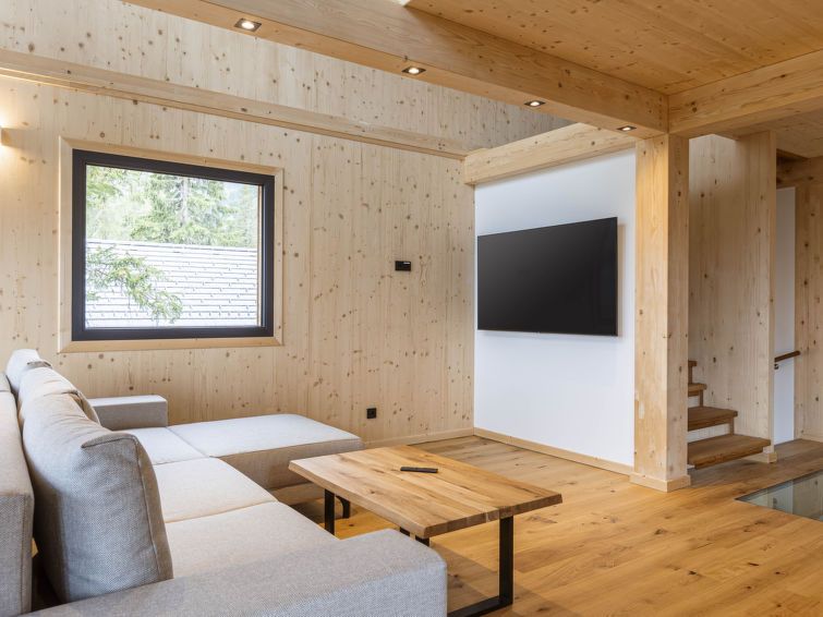 "Superior 27 mit Sauna & Hot Tub", 5-room chalet 135 m2 on 3 levels. Modern and tasteful furnishings: living room with dining table and satellite TV (flat screen). 3 double bedrooms, each room with shower/WC. 1 double bedroom. Open kitchen (oven, dishwasher, 4 ceramic glass hob hotplates, toaster, kettle, microwave, electric coffee machine).