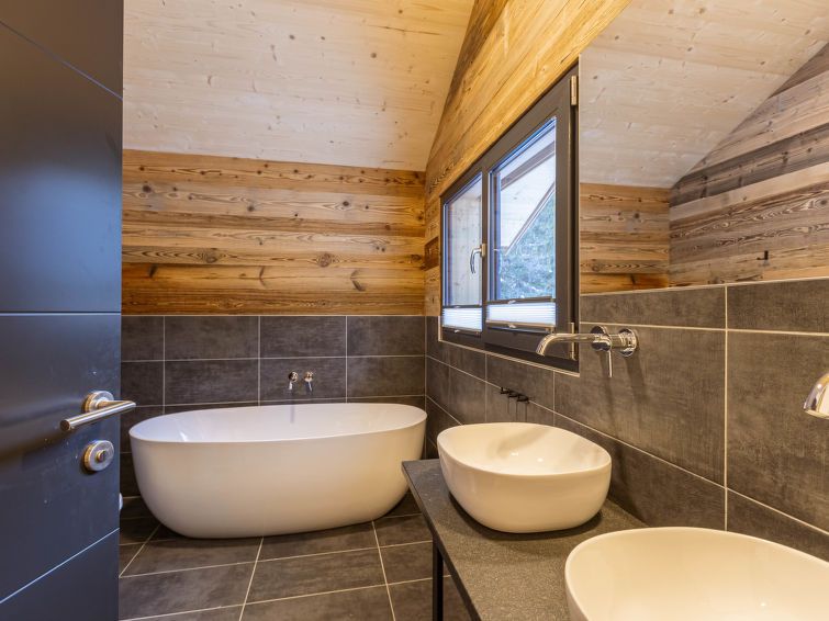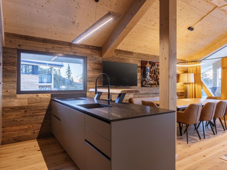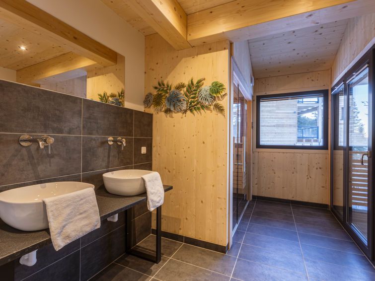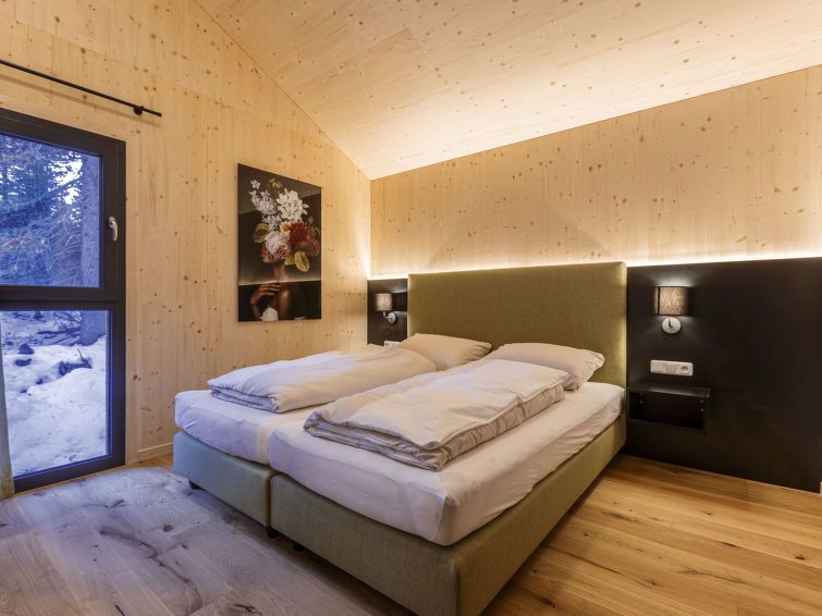 "Superior 4 mit Sauna & Hot Tub", 5-room chalet 135 m2 on 2 levels. Bright, modern and tasteful furnishings: living/dining room with dining nook and satellite TV (flat screen). 4 double bedrooms. Open kitchen (oven, dishwasher, 4 ceramic glass hob hotplates, toaster, kettle, microwave, electric coffee machine).