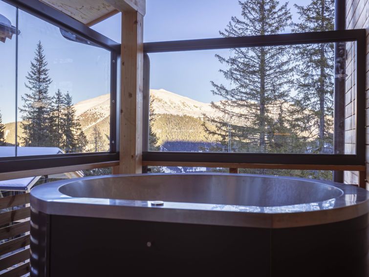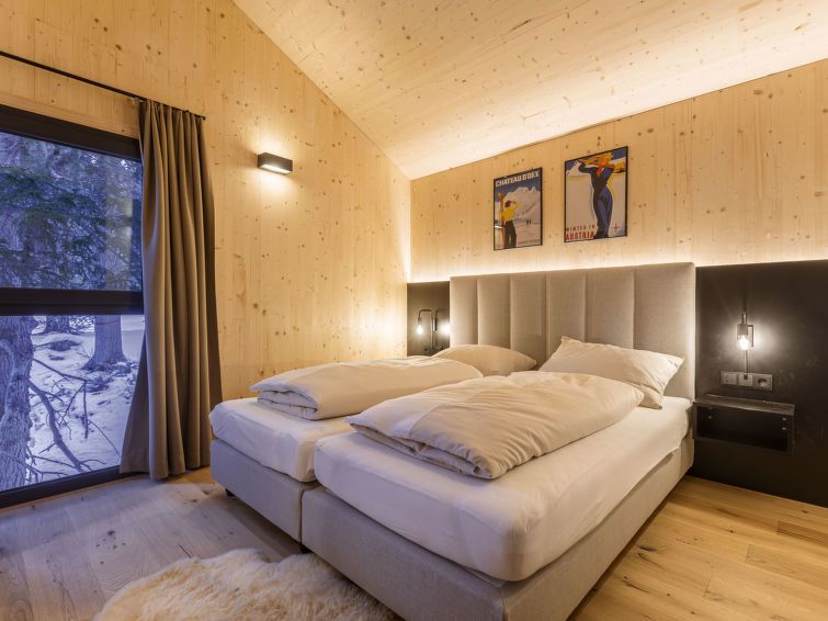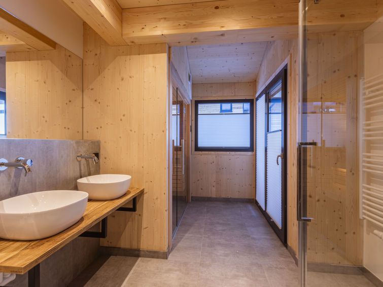 "Superior 6 mit Sauna & Hot Tub", 5-room chalet 135 m2 on 2 levels. Bright, modern and tasteful furnishings: living/dining room with dining nook and satellite TV (flat screen). 4 double bedrooms. Open kitchen (oven, dishwasher, 4 ceramic glass hob hotplates, toaster, kettle, microwave, electric coffee machine).