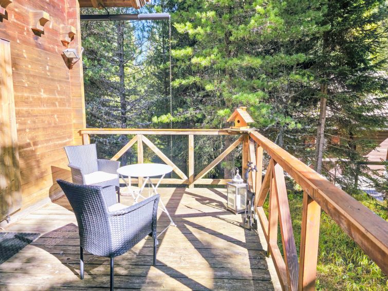 "Zirbenwaldhütt'n", 5-room house 90 m2 on 3 levels. Spacious: with TV, flat screen, radio and wood-burning stove. Open kitchen (4 ceramic glass hob hotplates, toaster, kettle) with dining table. Shower/WC. On the lower ground floor: kitchenette (2 hot plates, toaster, kettle, electric coffee machine, combination microwave).