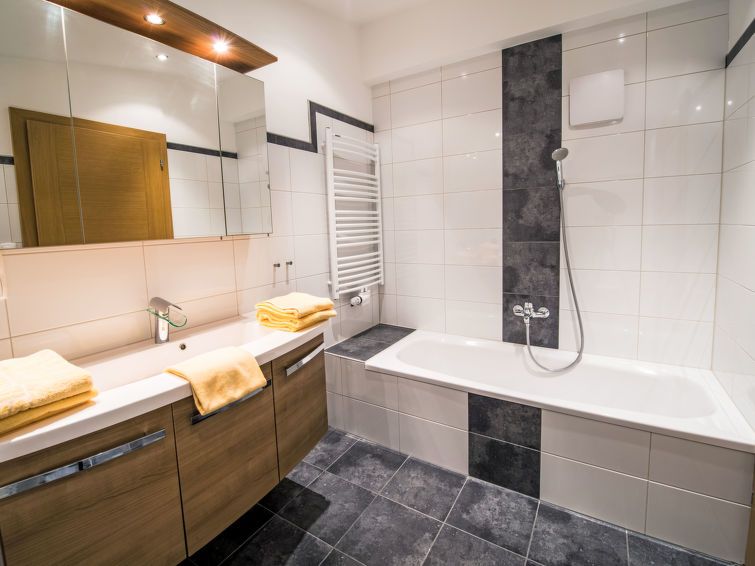 "Wohlfühlappartment Vicky", 4-room apartment 95 m2. Very comfortable furnishings: open living/dining room with dining table, flat screen, hi-fi system and DVD. Exit to the balcony. 2 double bedrooms. 1 double bedroom with satellite TV. Open kitchen (oven, dishwasher, 4 ceramic glass hob hotplates, toaster, kettle, microwave, freezer, electric coffee machine).