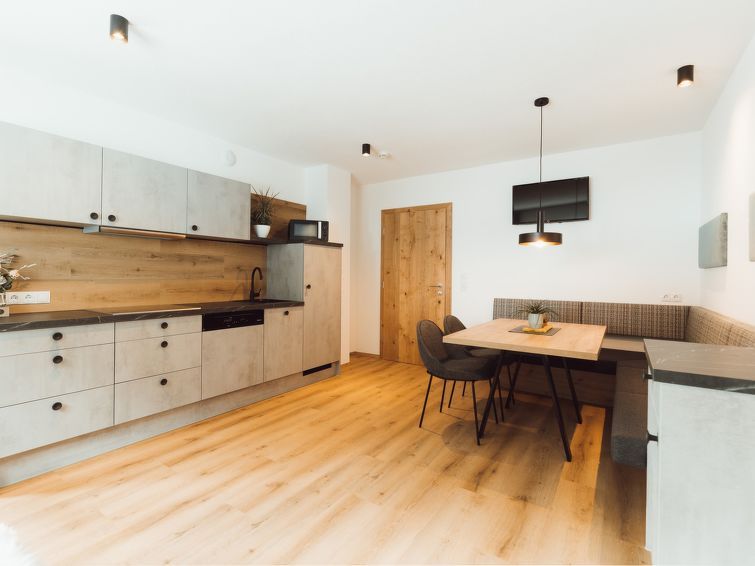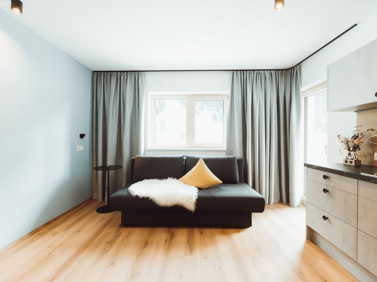 "Himmelraich", 2-room apartment 50 m2, on the ground floor, north-east facing position. Modern and tasteful furnishings: entrance hall. 1 room with 1 bed, 1 double bed and cable TV (flat screen). Large kitchen-/living room (oven, dishwasher, 4 ceramic glass hob hotplates, kettle, microwave, electric coffee machine) with 1 double sofabed, dining table and cable TV (flat screen).