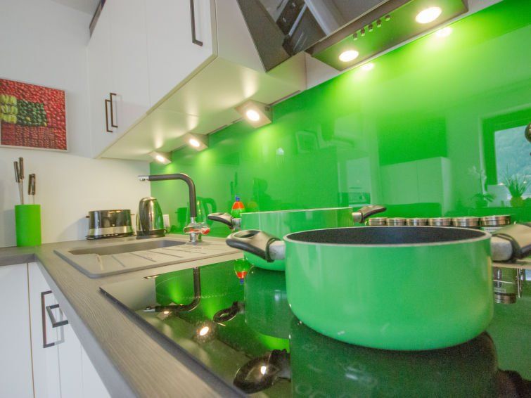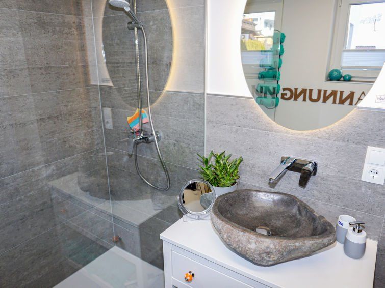 Really nice alpine views from the balcony. Clean apartment, everything worked. Nice, spacious bathroom. Behind the window of the second bedroom, the neighbor's water feature was constantly humming, it would have been fine without it. Areas for improvement: washing machine (already connected) and air conditioning. There is a good bus connection to the village, but there is a steep climb from the bus stop to the apartment. The distance is only 1.2 km, but there is so much climbing that it cannot be recommended with luggage. Without a car, the apartment is also not suitable for people in poor health or small children.