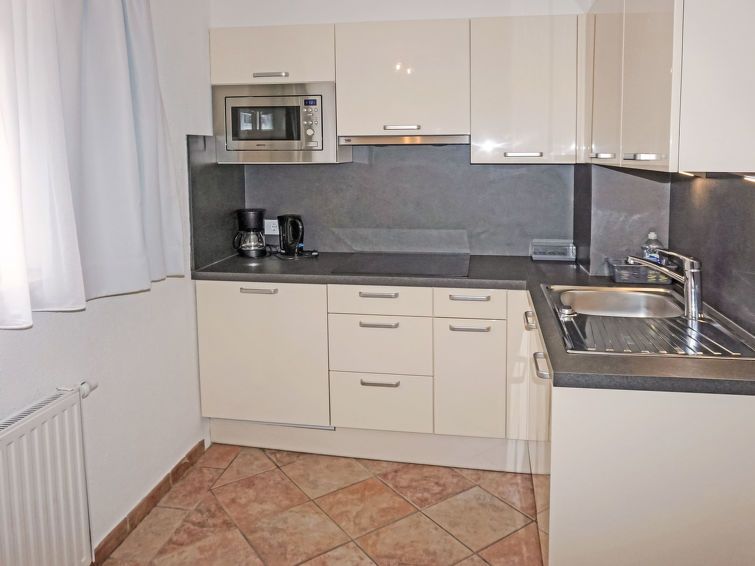 "Studio 1", 1-room studio 35 m2. Comfortable and tasteful furnishings: kitchen-/living room (dishwasher, 4 ceramic glass hob hotplates, toaster, kettle, microwave, electric coffee machine) with 1 bed (180 cm, length 200 cm), dining table and satellite TV (flat screen). Shower, sep.