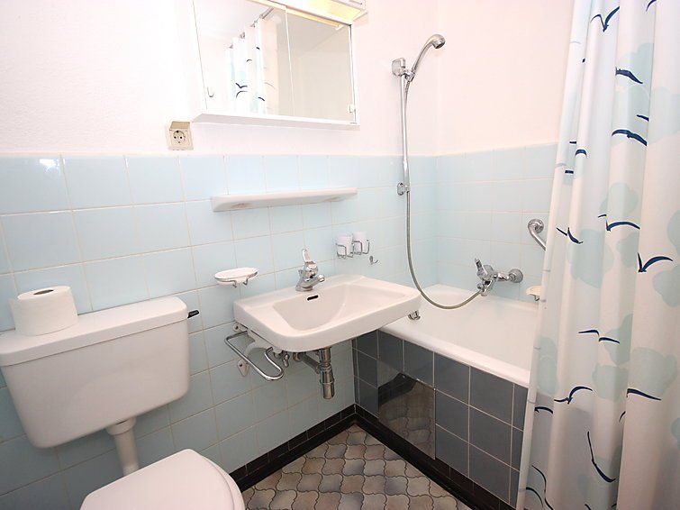 1-room apartment 33 m2 on 2nd floor. Living/dining room with 1 double fold-away bed and cable TV (flat screen), radio. Kitchen (3 hot plates, oven). Bath/WC. Balcony. Balcony furniture. Please note: non-smokers only. Maximum 1 pet/ dog allowed. Smoke alarm.