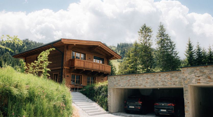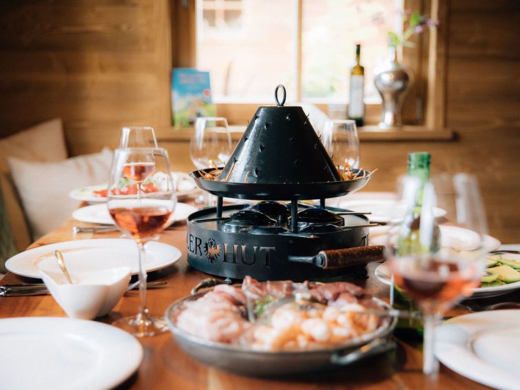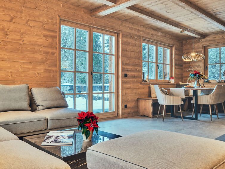 "Sissis Green Chalet Theresia", 4-room chalet 150 m2 on 2 levels. Luxurious and wooden furniture furnishings: entrance hall. 1 double bedroom with shower/WC, TV and digital TV (flat screen). Large kitchen-/living room (dishwasher, 4 induction hot plates, toaster, kettle, microwave, electric coffee machine, cooking island) with dining table, open-hearth fireplace, TV and digital TV (flat screen), electric shutters.
