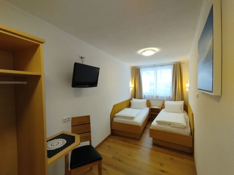 "Apart Garni Wachter", 3-room apartment 55 m2, on the lower ground floor. Bright, modern furnishings: 1 double bedroom with shower/WC and satellite TV. 1 room with 2 beds, shower/WC and satellite TV. Kitchen-/living room (oven, dishwasher, 4 ceramic glass hob hotplates, toaster, kettle, microwave, electric coffee machine) with dining table, radio.