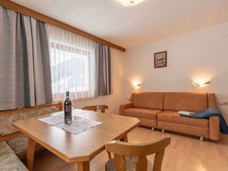 "Apart Romantica", 2-room apartment 42 m2 on 1st floor. Bright, simple furnishings: living/sleeping room with 1 double sofabed, dining nook and satellite TV. 1 double bedroom. Open kitchen (4 hot plates, oven, kettle, electric coffee machine). Shower/WC. Heating. Parquet floors, carpet.