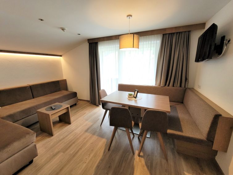 "Top 6 (Panorama)", 3-room apartment 65 m2 on 3rd floor. Comfortable and tasteful furnishings: 1 double bedroom with 1 bed, 1 double bed and shower/WC. 1 double bedroom. Living/dining room with 1 sofabed, dining nook and satellite TV (flat screen). Exit to the balcony. Open kitchen (dishwasher, 4 ceramic glass hob hotplates, kettle, microwave, electric coffee machine).
