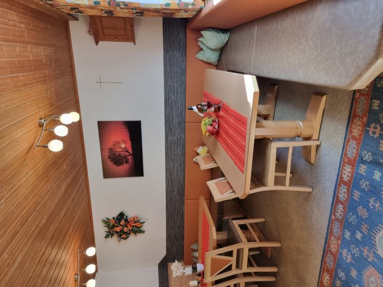 "Vesul", 5-room house 120 m2 on 2 levels. Cosy and wooden furniture furnishings: living/dining room with dining nook, satellite TV and radio. Kitchenette (4 hot plates, oven, dishwasher, toaster, kettle, microwave, freezer, electric coffee machine). Shower/WC. Upper floor: 1 double bedroom with shower/WC and satellite TV.