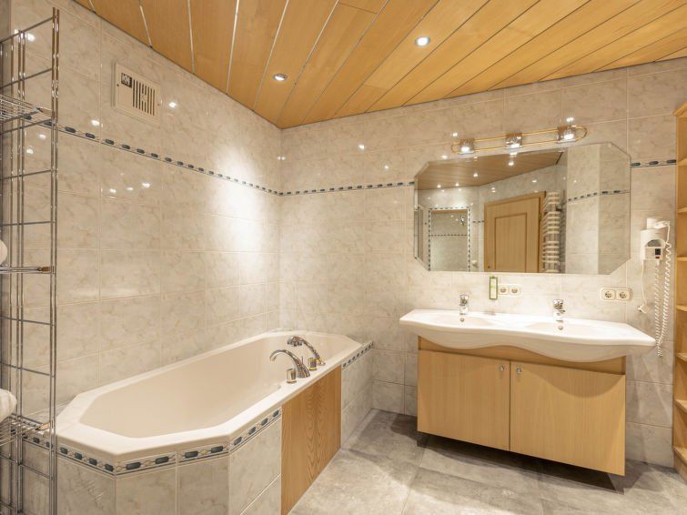 The accommodation is very comfortable. There is a spacious living room and the bedrooms are also spacious enough. It is very nice that each bedroom has its own bathroom. These bathrooms are a bit small and dated, but clean. In addition, we found the location very good; in a quiet village center and only a 6-minute drive from the first ski lift. Also nice (for children) that there is a ski lift within walking distance. The only thing we really missed in the apartment is a (combi) oven in the kitchen.